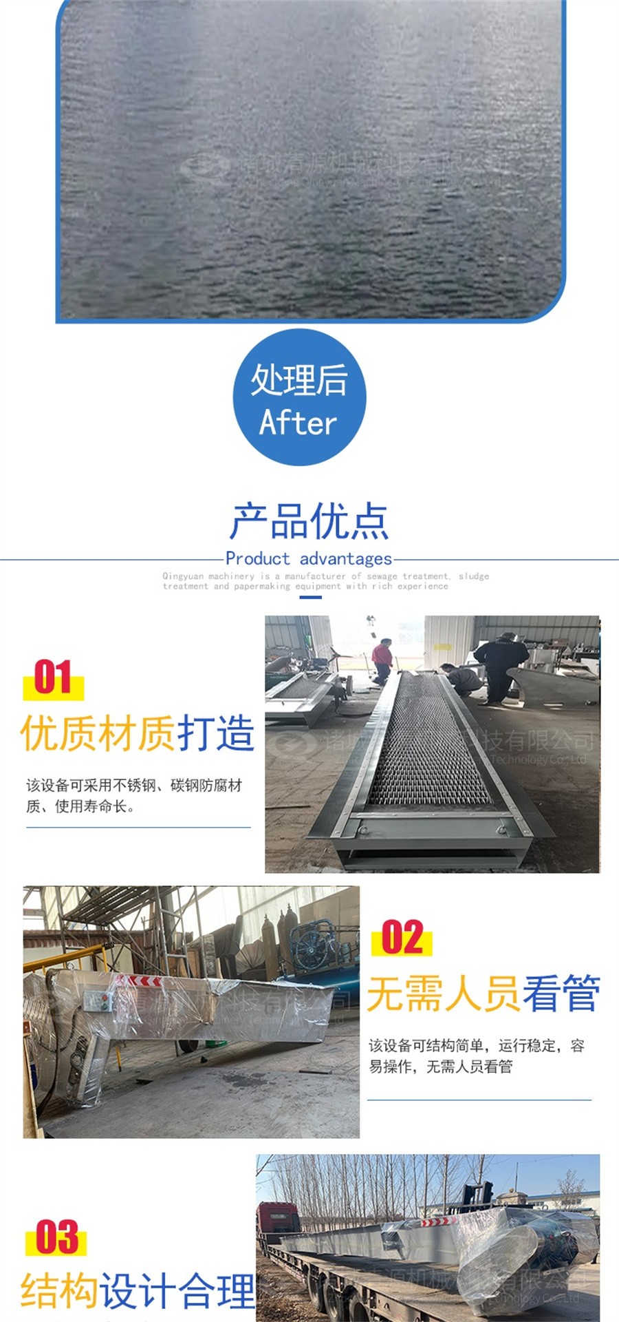 三、應(yīng)用范圍:格柵除污機廣泛應(yīng)用于給水、排水的二道格柵及無粗大漂浮物的取水構(gòu)筑物進水口; 也可用在造紙、紡織、皮革、釀酒、榨糖、水產(chǎn)等工業(yè)廢水及市政污水。