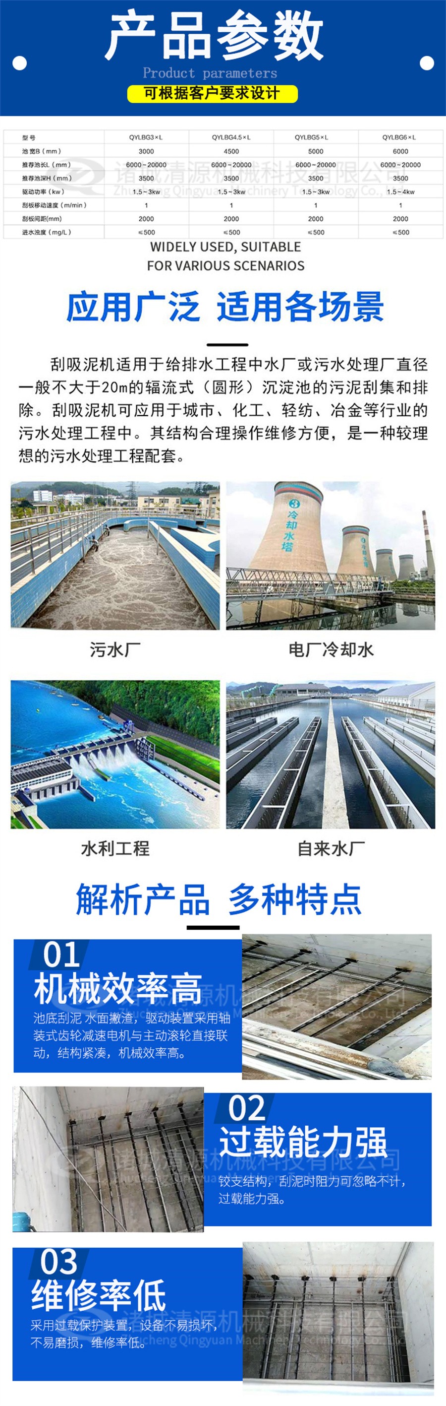 我公司除生產(chǎn)鏈板式刮油刮泥機(jī)外,還生產(chǎn):行車提耙刮泥機(jī),全橋式周邊傳動(dòng)刮吸泥機(jī),污泥濃縮機(jī),污泥脫水一體化等其他污泥濃縮設(shè)備。