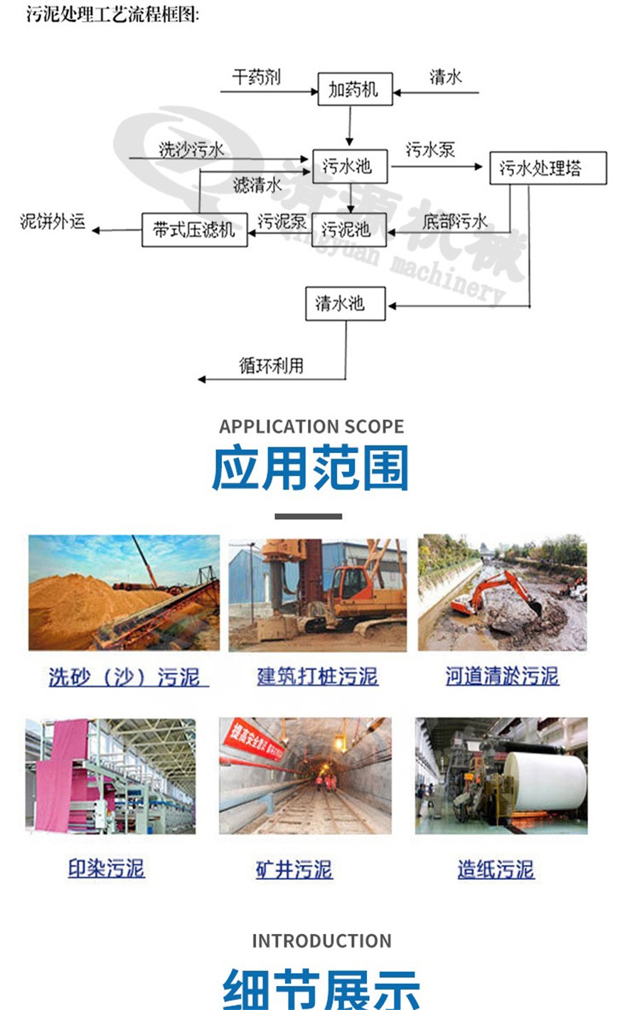 專門適用于制沙場洗沙污水處理,建筑打樁泥漿,砂場泥漿脫水,鉆井泥漿處理,隧道山洞泥漿,洗礦廢水處理等各種泥漿和水的分離。