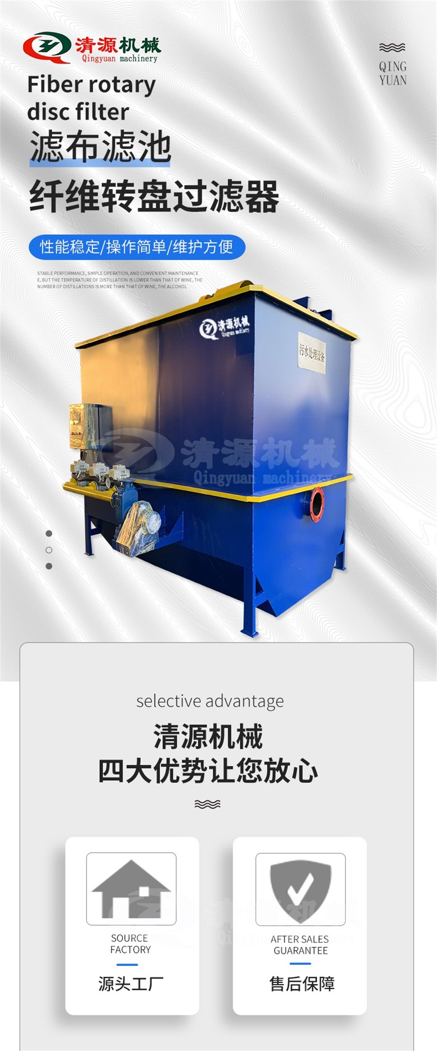 諸城清源機械科技有限公司纖維轉盤過濾器特點: