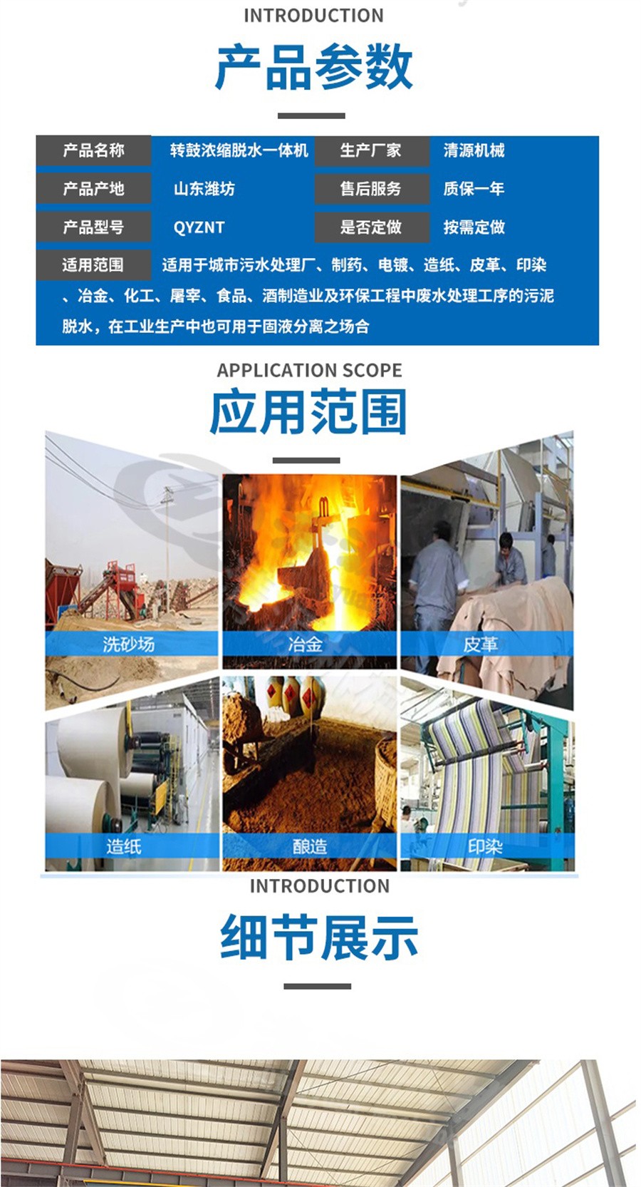 4。污泥的產量和干度可由無極變速裝置控制,清洗水用量可由液位控制系統調節。